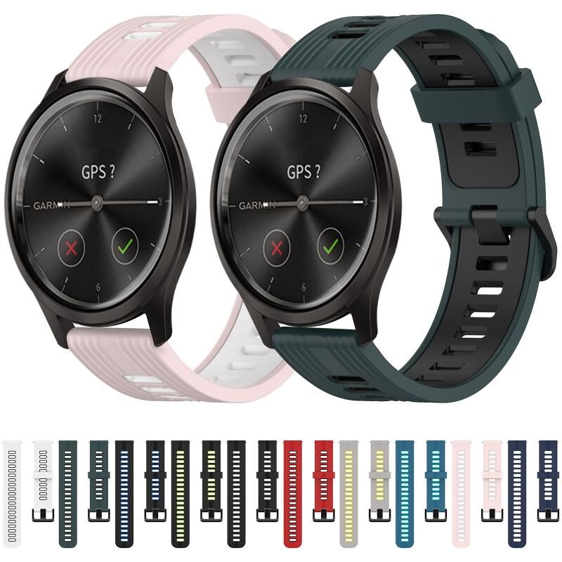 Για Garmin Move Style 20mm Κάθετο Μοτίβο Διχρωμικό Λουράκι Σιλικόνης Ρολογιού (Λευκό+Μαύρο)
