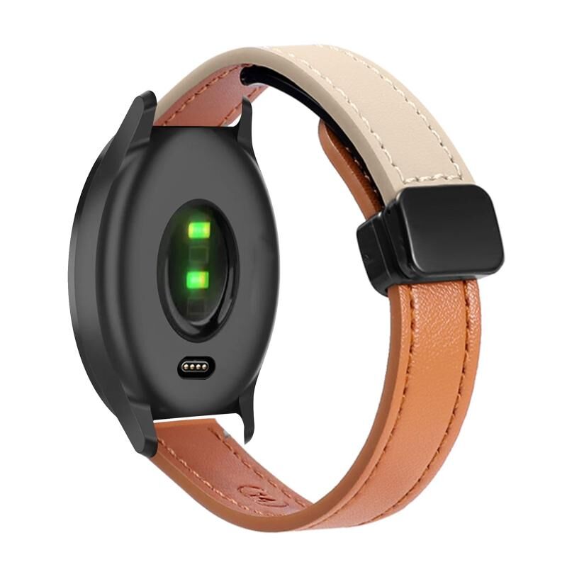 Για το Garmin Move Trend Slim Μαγνητική Πόρπη 20 χιλιοστών δερμάτινο λουράκι ρολογιού από μικροΐνες (Aimaorange+Cream Apricot)