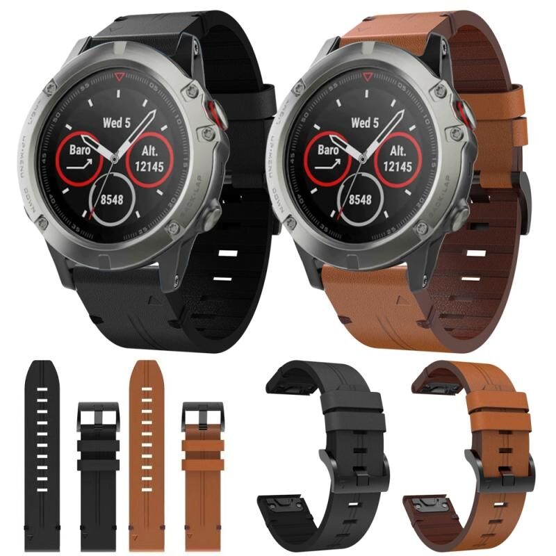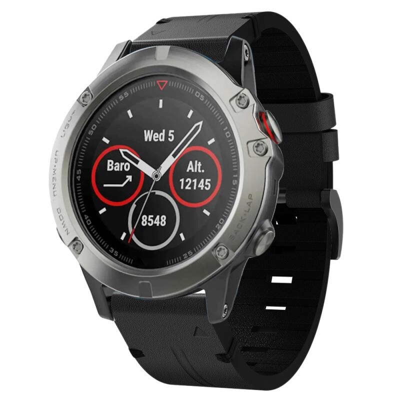 Για Garmin Quatix 5 22mm δερμάτινη ζώνη ρολογιού με ατσάλινη πόρπη (μαύρο)