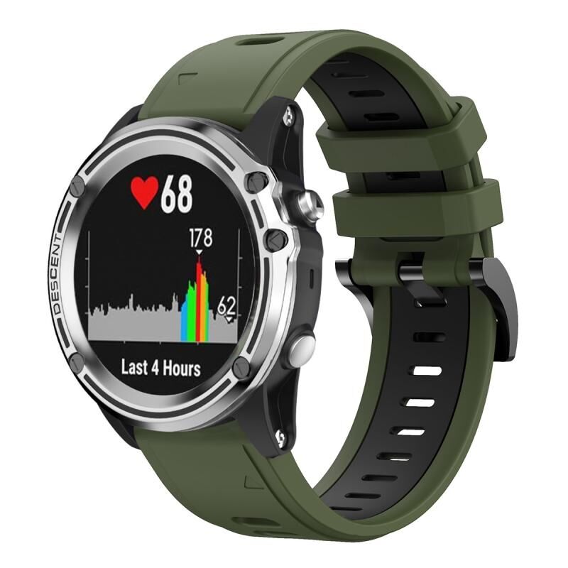 Για το Garmin Quatix 5 22 χιλιοστά δύο χρωμάτων αθλητική ζώνη σιλικόνης ρολόι (πράσινο στρατού + μαύρο)