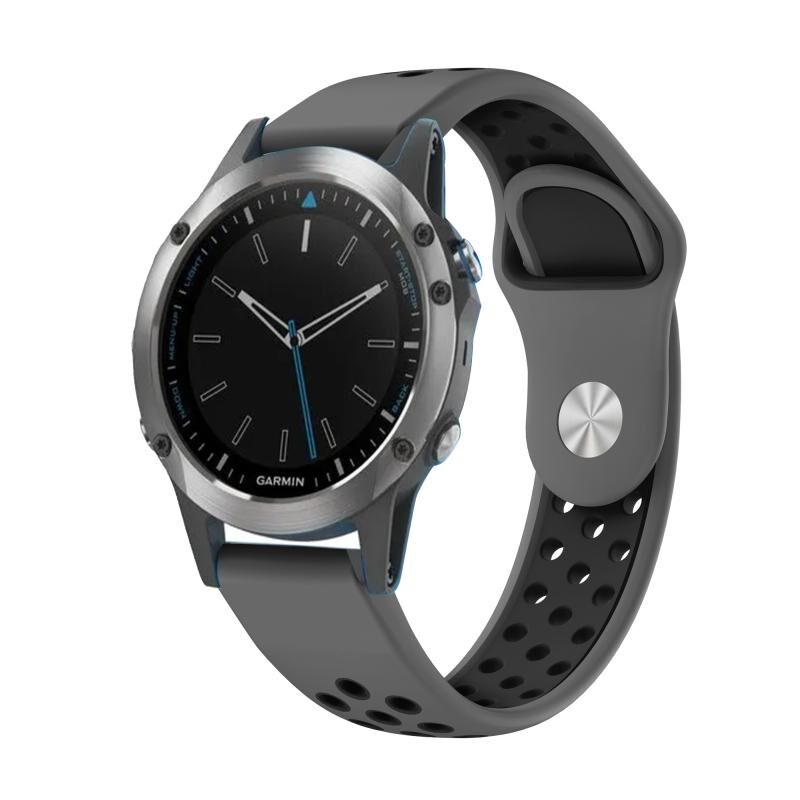 Για Garmin Quatix 5 Sapphire 22mm Αθλητικό αναπνεύσιμο λουράκι σιλικόνης (γκρι+μαύρο)