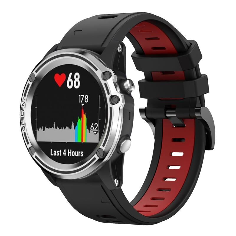 Για το Garmin Quatix 5 Sapphire 22 χιλιοστά δύο χρωμάτων Αθλητικό λουράκι σιλικόνης (μαύρο + κόκκινο)