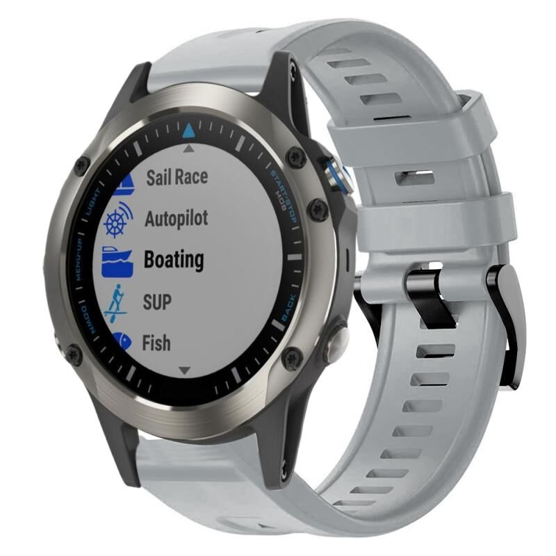 Για το Garmin Quatix 5 Sapphire Metal Buckle Solid Color Silicone Watch Band (γκρι)