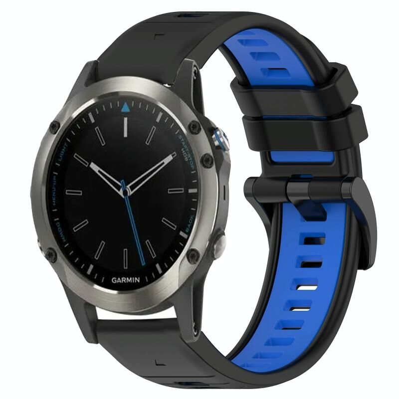 Λουράκι Garmin Quatix 5 Sapphire Sports 22mm Σιλικόνης Δύο Χρωμάτων (Μαύρο+Μπλε)