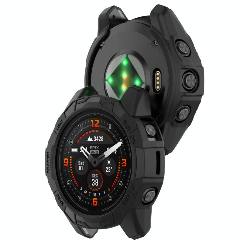 For Garmin Quatix 7 Pro Armored Hollow Half Pack TPU Watch Protective Case(Black)