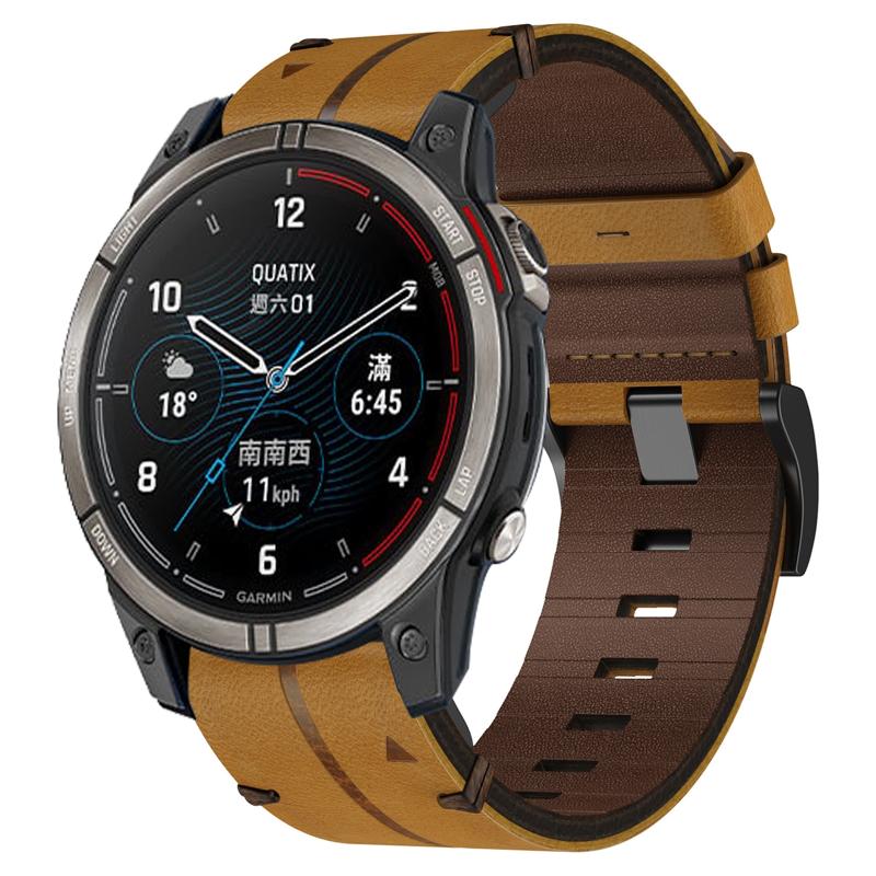 For Garmin Quatix 7 Pro Leather Textured 22mm Watch Band(Brown)