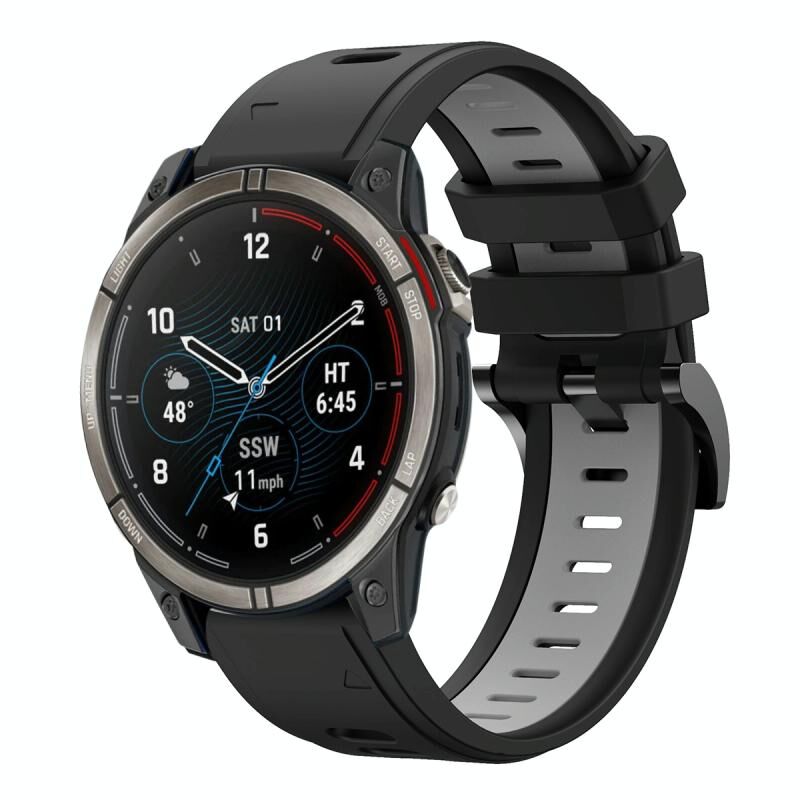 Για το Garmin Quatix 7 Pro Αθλητισμός Δύο χρώματα 22mm σιλικόνης ρολόι μπάντα (μαύρο + γκρι)