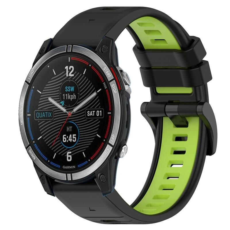 Λουράκι Garmin Quatix 7 Sports 22mm Διχρωμίας Σιλικόνης (Μαύρο+Λαχανί)