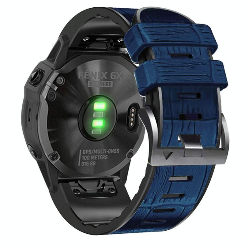For Garmin QuickFit 22mm Kalebol Crocodile Texture Silicone Leather Watch Band(Dark Blue) (Kalebol)