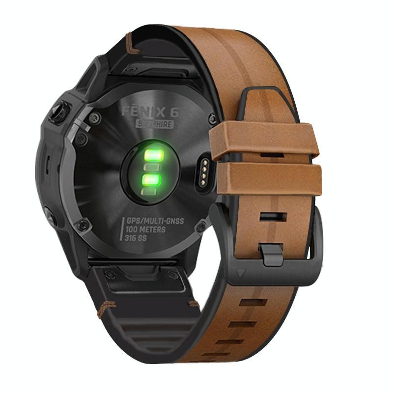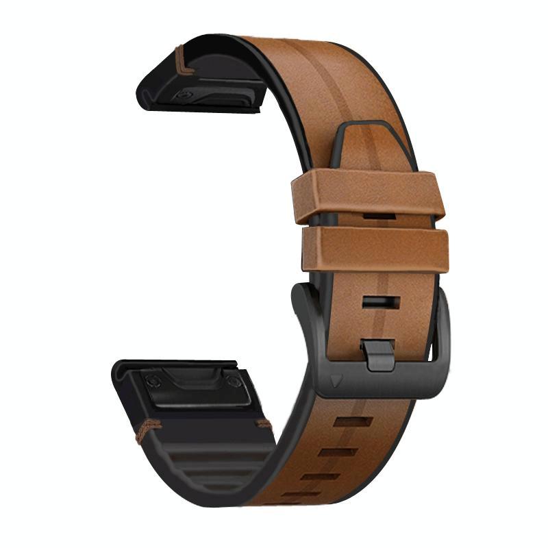 For Garmin QuickFit 26mm Kalebol Quick Release Silicone Leather Watch Band(Brown) (Kalebol)