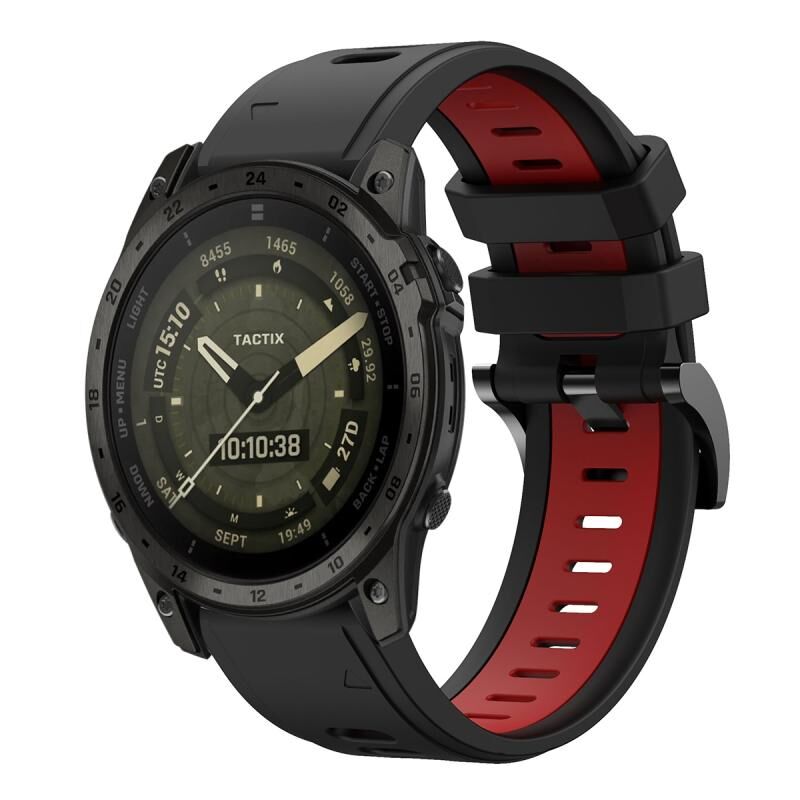 Για το Garmin Tactix 7 AMOLED Αθλητισμός Δύο χρώματα 26mm σιλικόνης ρολόι μπάντα (μαύρο + κόκκινο)