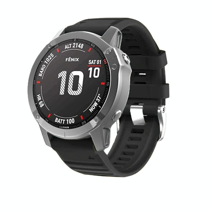 Για Garmin Tactix 7 Pro / Fenix 7X / 6X Pro 26mm βίδα ασημένια ατσάλινη πόρπη σιλικόνης ρολόι μπάντα (μαύρο)