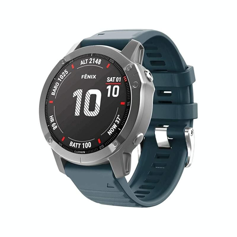 Για Garmin Tactix 7 Pro / Fenix 7X / 6X Pro 26mm βίδα ασημένια ατσάλινη αγκράφα σιλικόνης ρολόι μπάντα (Navy Blue)