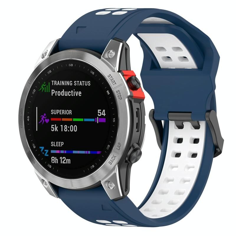 Για το Garmin TACTIX 7 Δύο χρώματα αντίστροφη πόρπη 26mm σιλικόνης ρολόι μπάντα (μπλε + λευκό)