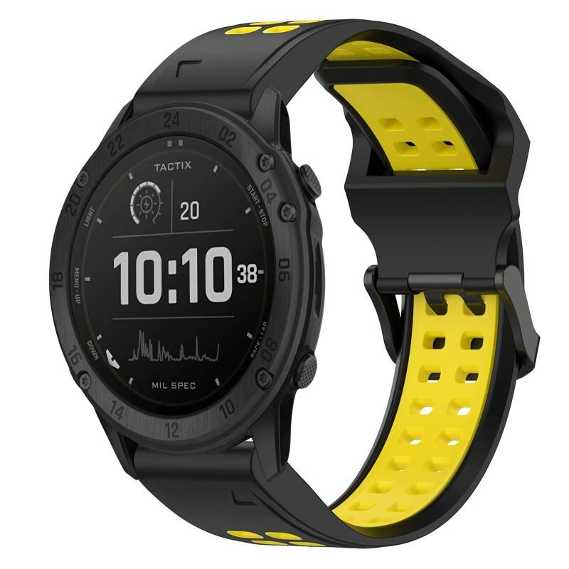 Για Garmin TACTIX DELTA Δίχρωμη Αντίστροφη Αγκράφα 26mm Ζώνη Ρολογιού Σιλικόνης (Μαύρο+Κίτρινο)