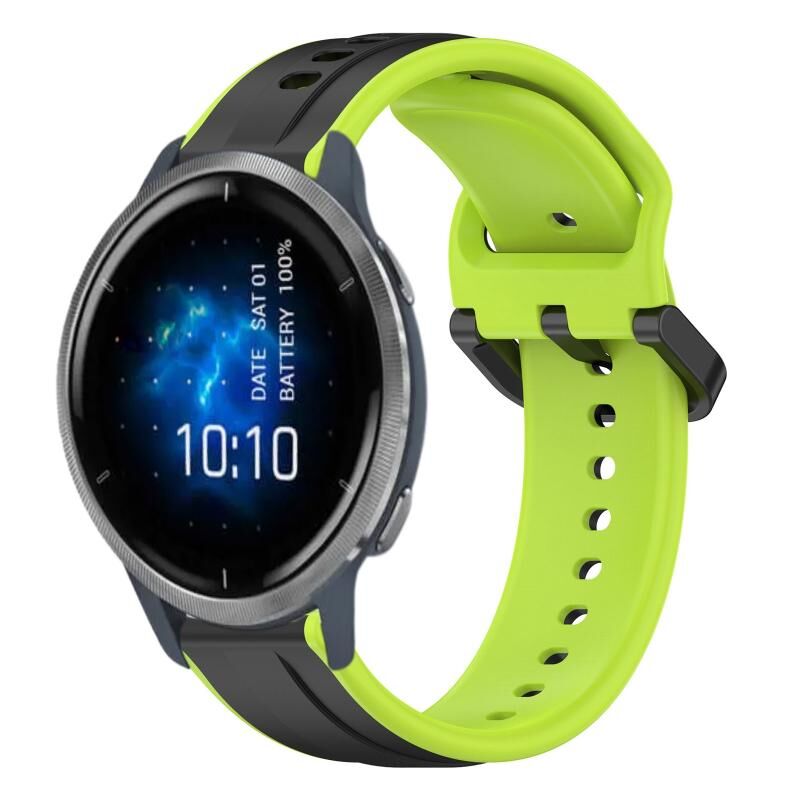 Για το Garmin Venu 2 22mm Convex Loop δύο χρωμάτων σιλικόνης ρολόι μπάντα (μαύρο+Lime)