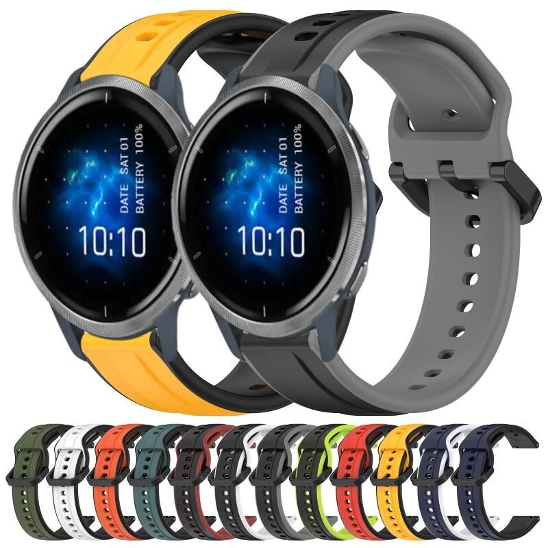 Για το Garmin Venu 2 22mm Convex Loop Two-Color Silicone Watch Band(Olive Green + Black)