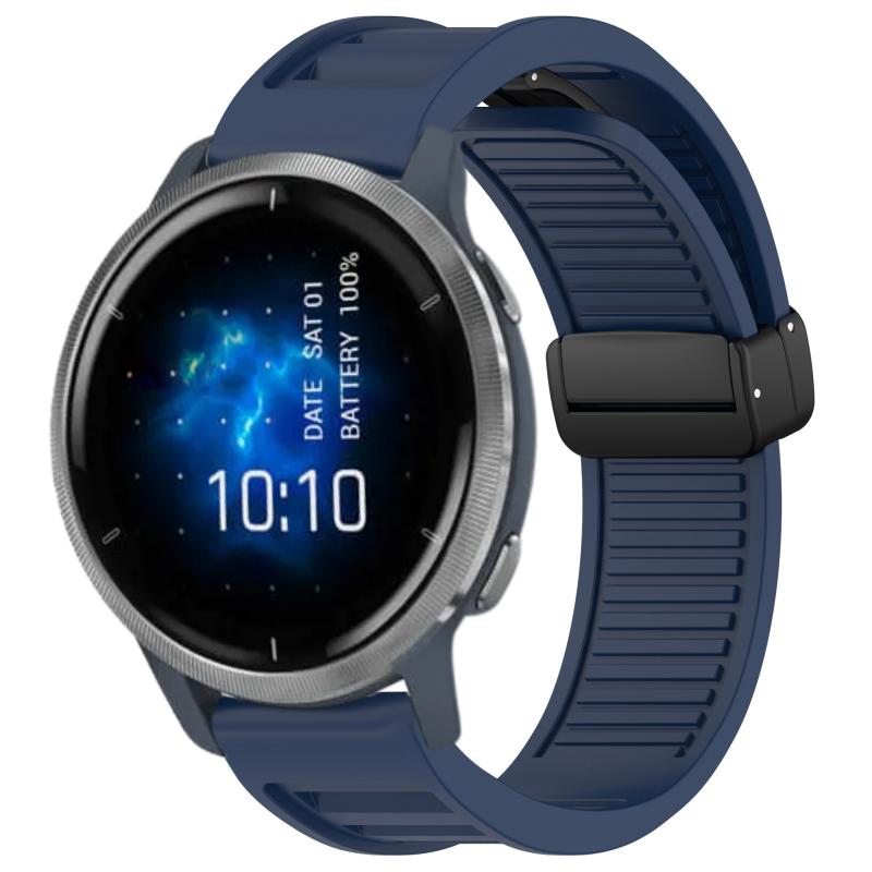 For Garmin Venu 2 22mm Foldable Magnetic Buckle Silicone Watch Band(Midnight Blue)
