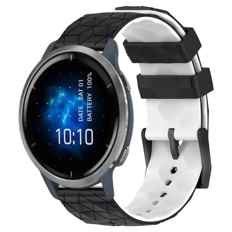 Για Garmin Venu 2 22mm ποδοσφαιρικό μοτίβο δύο χρωμάτων σιλικόνης ρολόι μπάντα ρολογιού (μαύρο + λευκό)