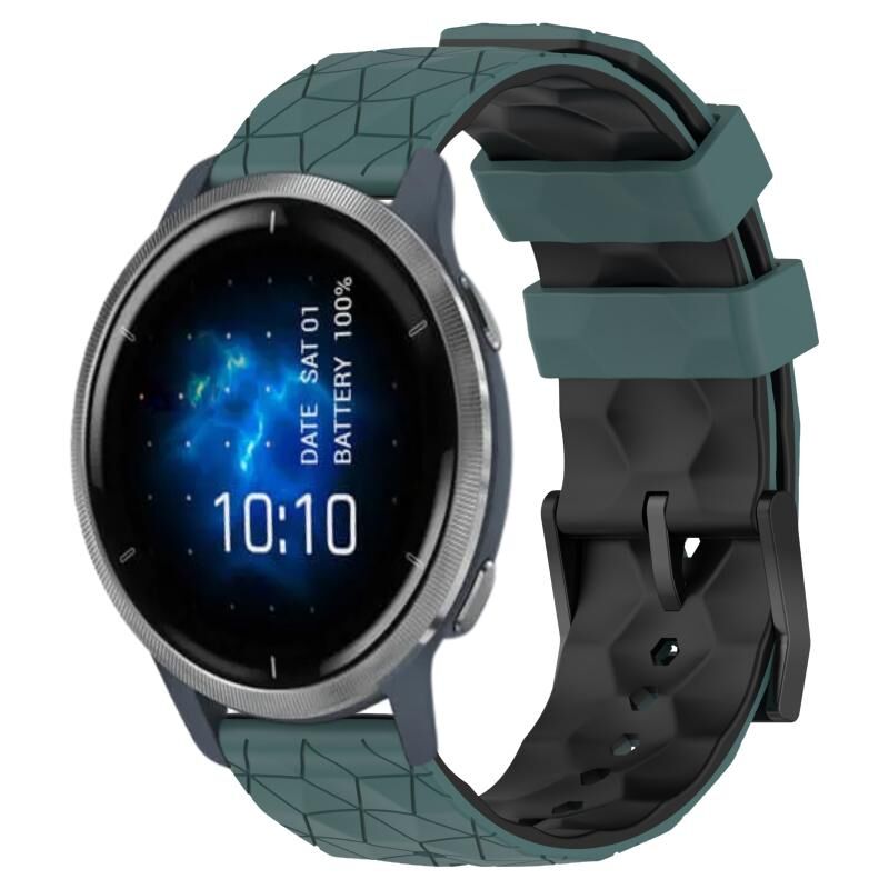 Για το Garmin Venu 2 22mm ποδοσφαιρικό μοτίβο σιλικόνης ρολόι μπάντα δύο χρωμάτων (Olive Green + μαύρο)