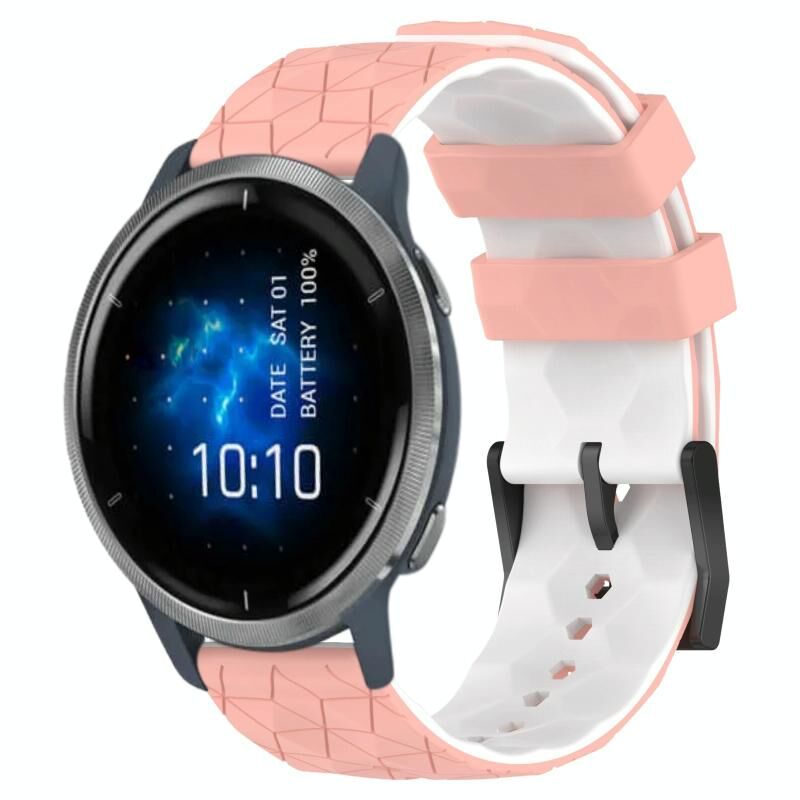 Για Garmin Venu 2 22mm ποδοσφαιρικό μοτίβο δύο χρωμάτων σιλικόνης ρολόι μπάντα (ροζ + λευκό)