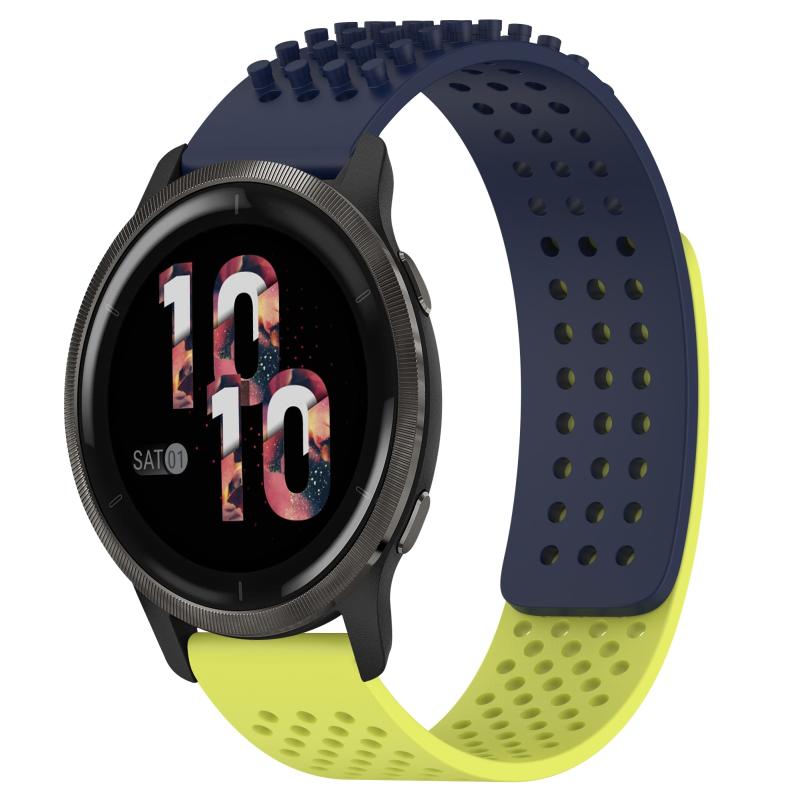 Για Garmin Venu 2 22mm Διάτρητο Σιλικόνης Λουράκι Αναπνοής (Μπλε Μεσονυχτί+Λαχανί)