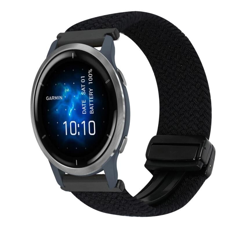 Για Garmin Venu 2 22mm μαγνητική πόρπη Braided Watch Band (Μαύρο)