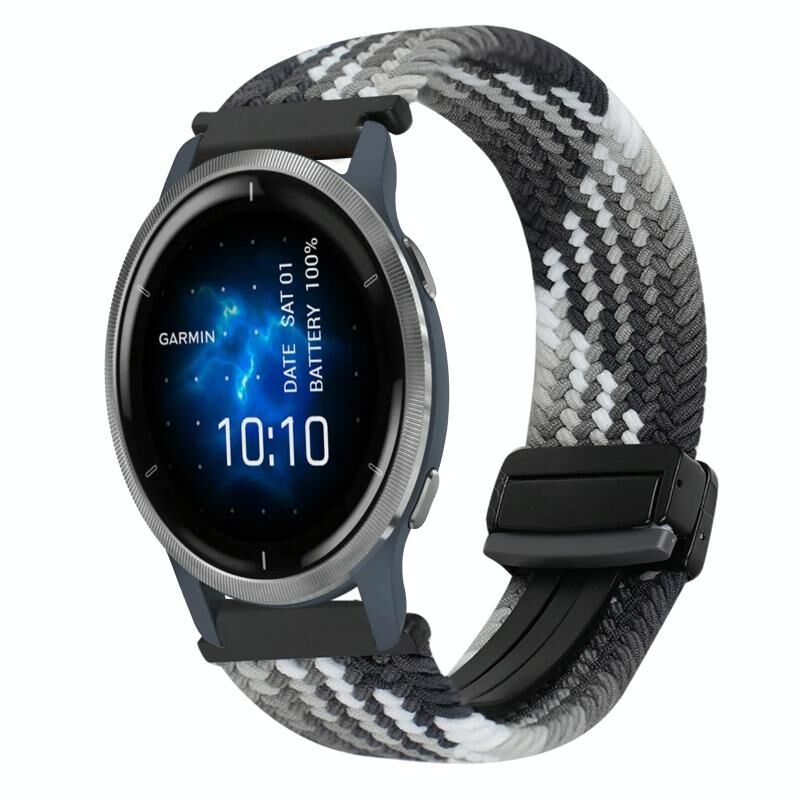 Για Garmin Venu 2 22mm μαγνητική πόρπη πλεκτή ζώνη ρολογιού (εκθαμβωτικό μαύρο)