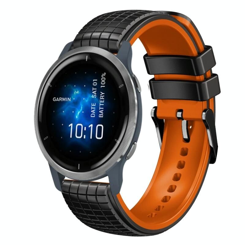 Για Garmin Venu 2 22mm Mesh Δύο χρώματα σιλικόνης ρολόι μπάντα (πορτοκαλί μαύρο)