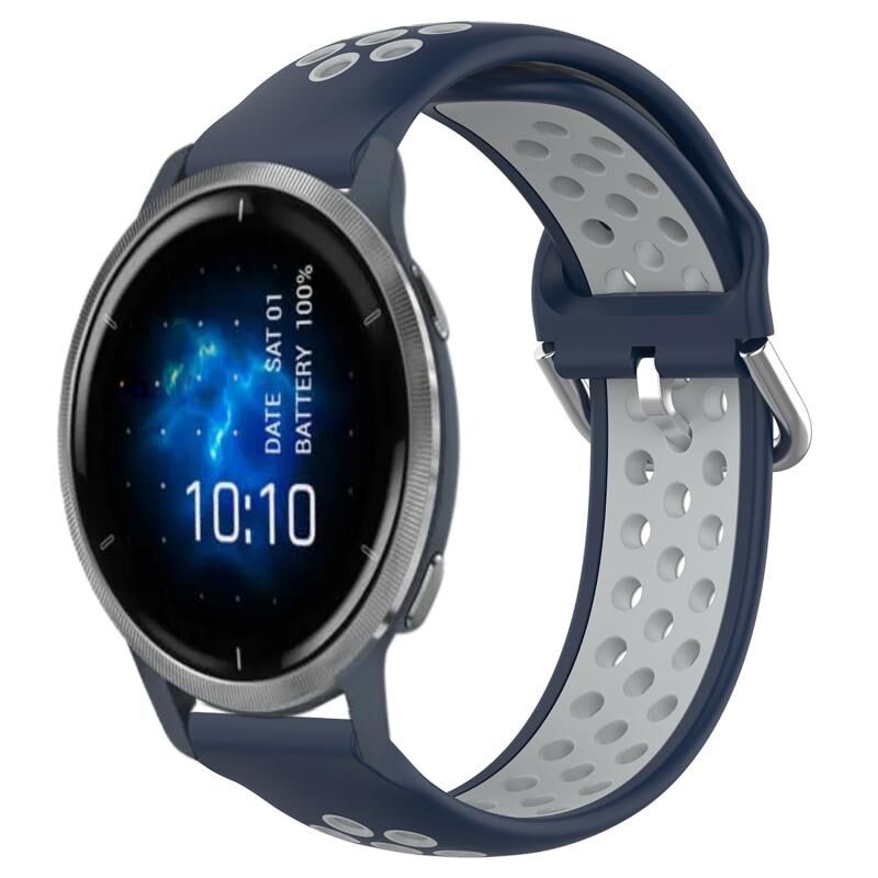 Για το Garmin Venu 2 22mm διάτρητο αναπνεύσιμο αθλητικό λουράκι σιλικόνης (μπλε + γκρι)