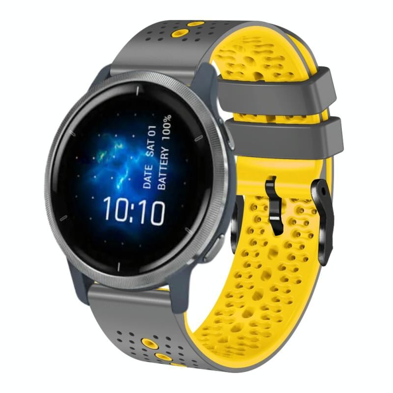 Για το Garmin Venu 2 22mm διάτρητη ζώνη ρολογιού σιλικόνης δύο χρωμάτων (γκρι+κίτρινο)