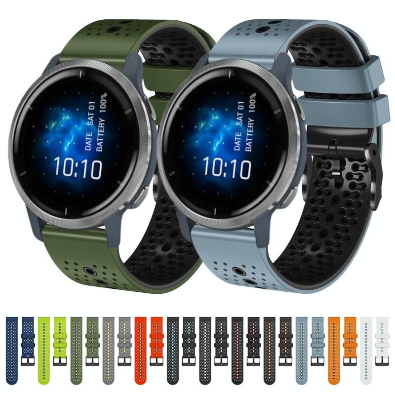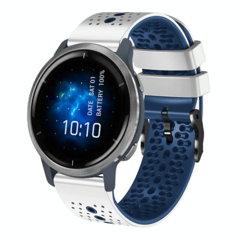 Για το Garmin Venu 2 22mm διάτρητη ζώνη ρολογιού σιλικόνης δύο χρωμάτων (λευκό+μπλε)