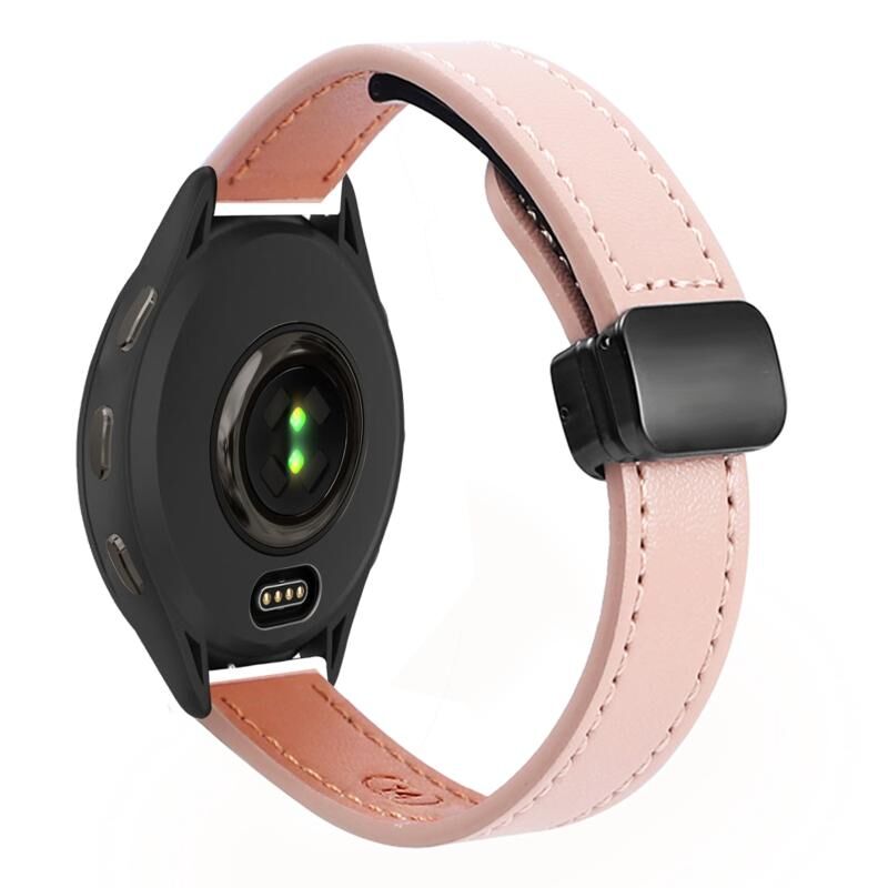 For Garmin Venu 2 22mm Slim Magnetic Buckle Microfiber Leather Watch Band(Sakura Pink)