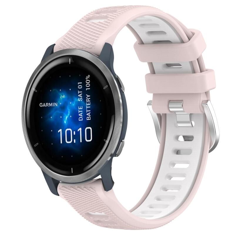 Για Garmin Venu 2 22mm Αθλητισμός Δύο χρωμάτων χάλυβα πόρπη σιλικόνης ρολόι μπάντα (ροζ + λευκό)