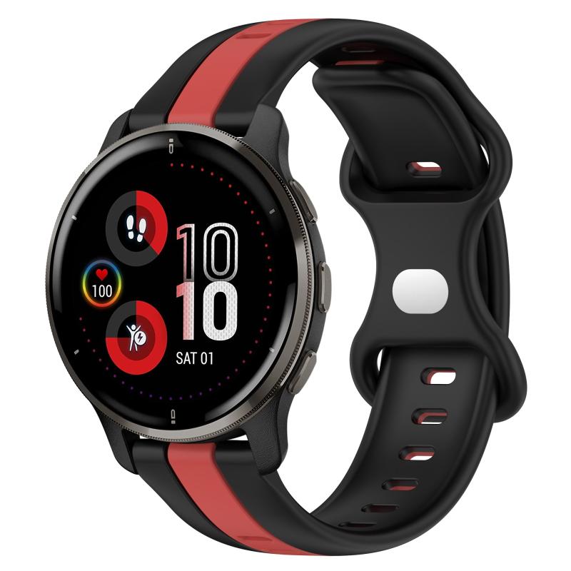 For Garmin Venu 2 Plus 20mm Butterfly Buckle Two-Color Silicone Watch Band(Black+Red)