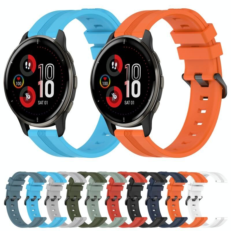 Για το Garmin Venu 2 Plus 20mm Concave ριγέ λουράκι ρολογιού Slicone (πράσινο στρατού)