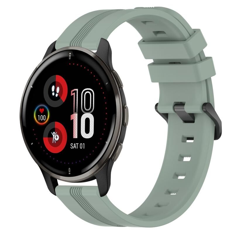 Για το Garmin Venu 2 Plus 20mm Concave Striped Slicone Watch Band (γκριζοπράσινο)