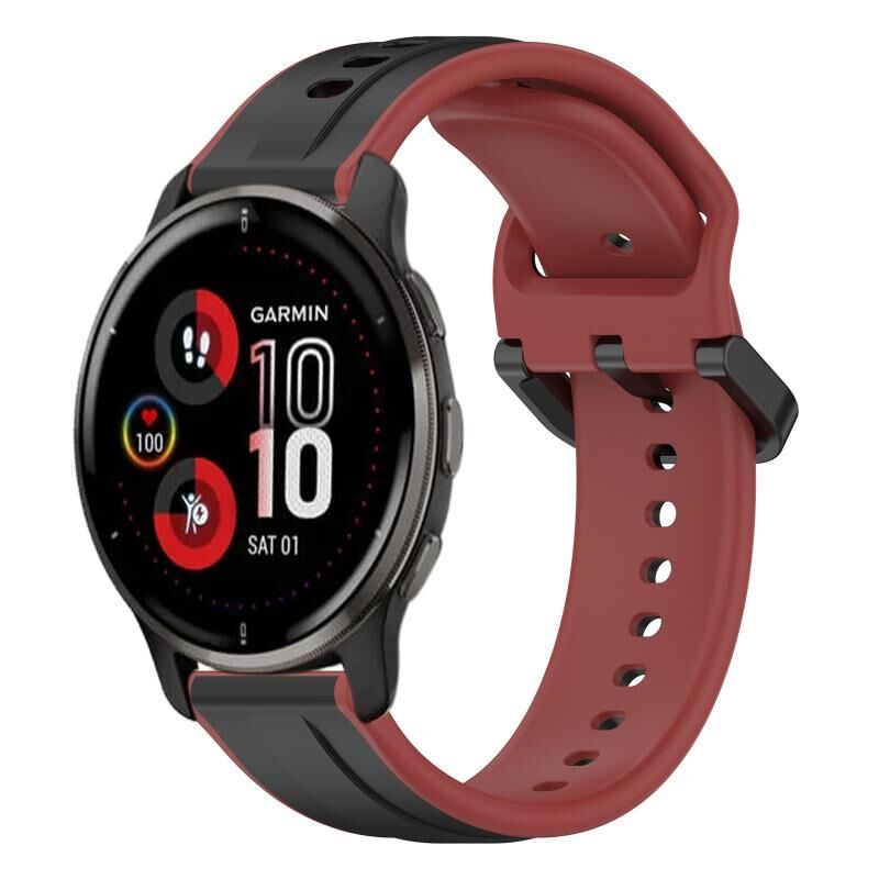 Για το Garmin Venu 2 Plus 20 χιλιοστά κυρτό βρόχο δύο χρωμάτων ζώνη σιλικόνης ρολόι (μαύρο + κόκκινο)
