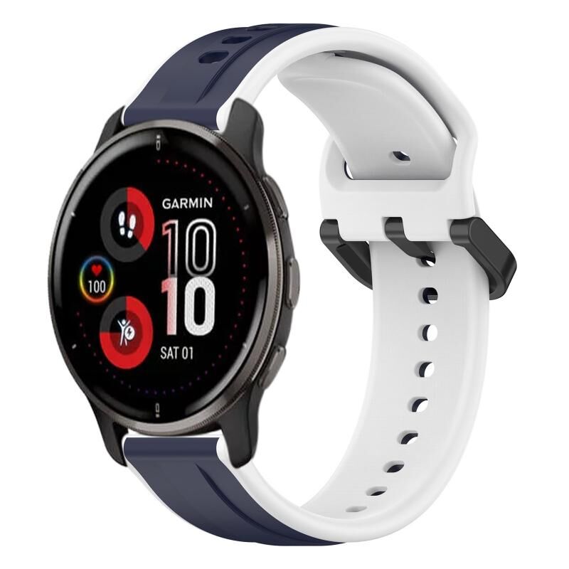 Για το Garmin Venu 2 Plus 20 χιλιοστά κυρτό βρόχο δύο χρωμάτων σιλικόνης ρολόι μπάντα (Midnight Blue + Λευκό)
