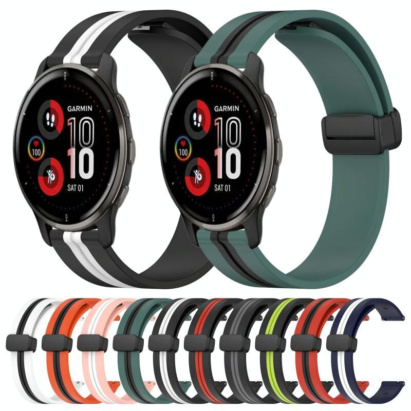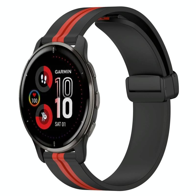 Για Garmin Venu 2 Plus 20mm Πτυσσόμενο μαγνητικό κούμπωμα ζώνη ρολογιού σιλικόνης (μαύρο+κόκκινο)