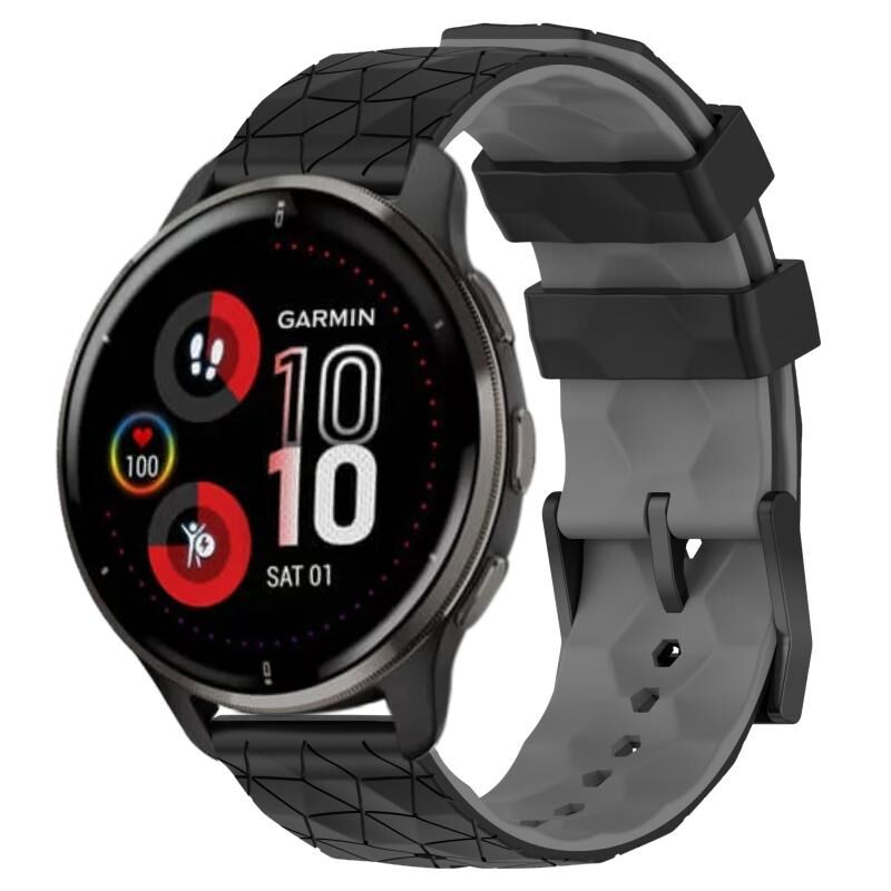 For Garmin Venu 2 Plus 20mm Football Pattern Two-Color Silicone Watch Band(Black+Grey)