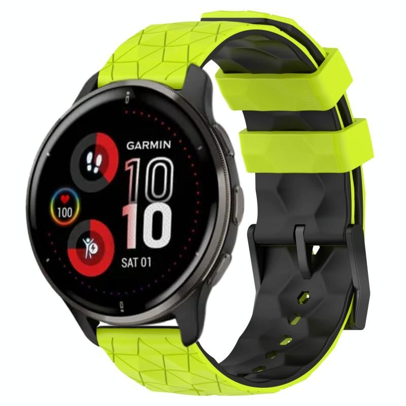 Για Garmin Venu 2 Plus 20 χιλιοστά ποδοσφαίρου μοτίβο δύο χρωμάτων σιλικόνης ρολόι μπάντα (Lime πράσινο + μαύρο)