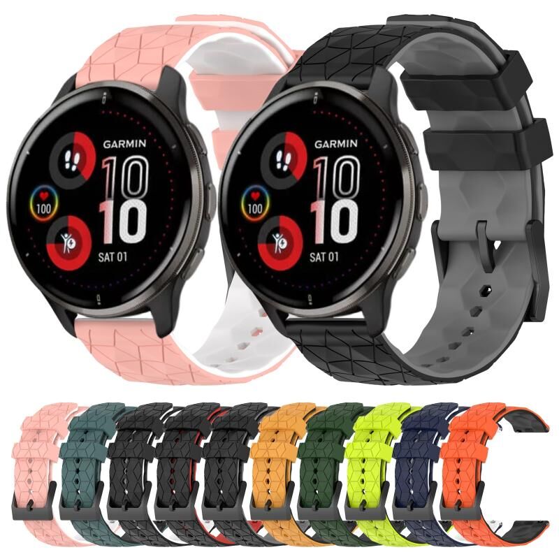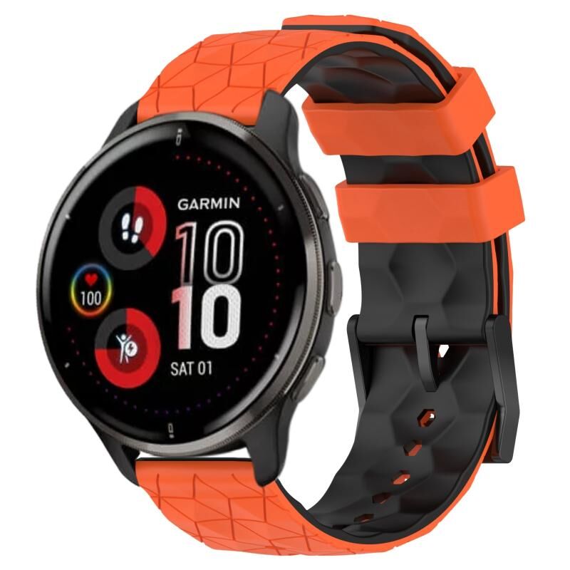 Για το Garmin Venu 2 Plus 20 χιλιοστά ποδοσφαιρικό μοτίβο δύο χρωμάτων σιλικόνης ρολόι μπάντα (πορτοκαλί + μαύρο)