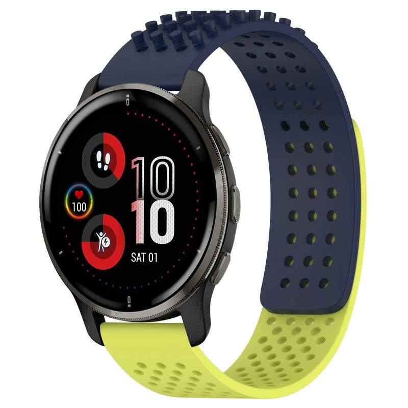 For Garmin Venu 2 Plus 20mm Holes Breathable 3D Dots Silicone Watch Band(Midnight Blue+Lime Green)
