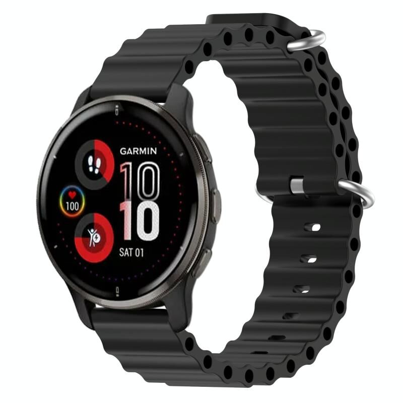 Για Garmin Venu 2 Plus 20mm Ocean Style σιλικόνης στερεό χρώμα ρολόι μπάντα (μαύρο)