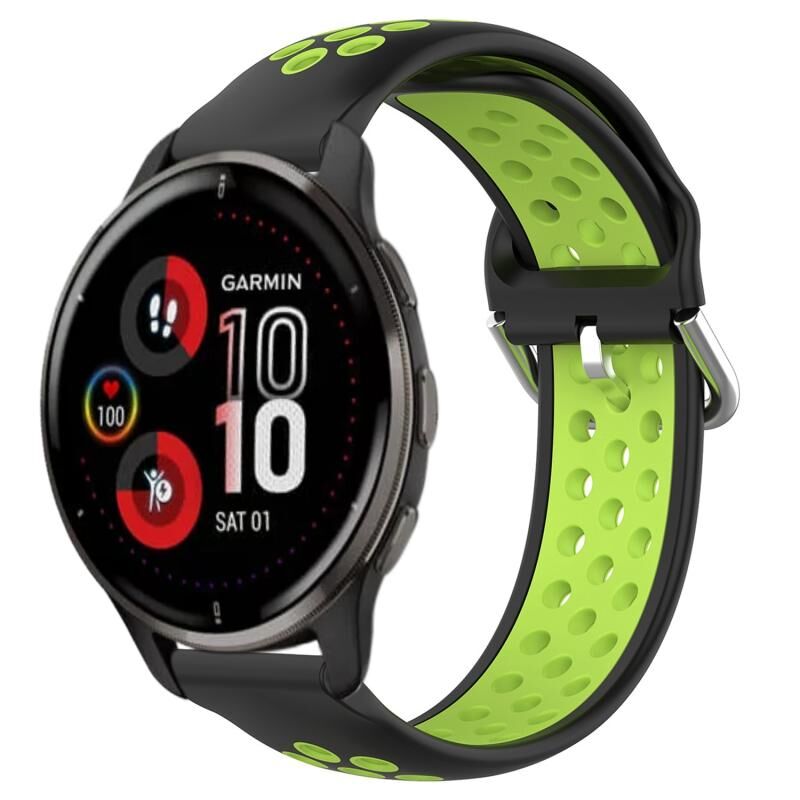 Για το Garmin Venu 2 Plus 20mm διάτρητο αναπνεύσιμο αθλητικό λουράκι σιλικόνης (μαύρο + ασβέστη)
