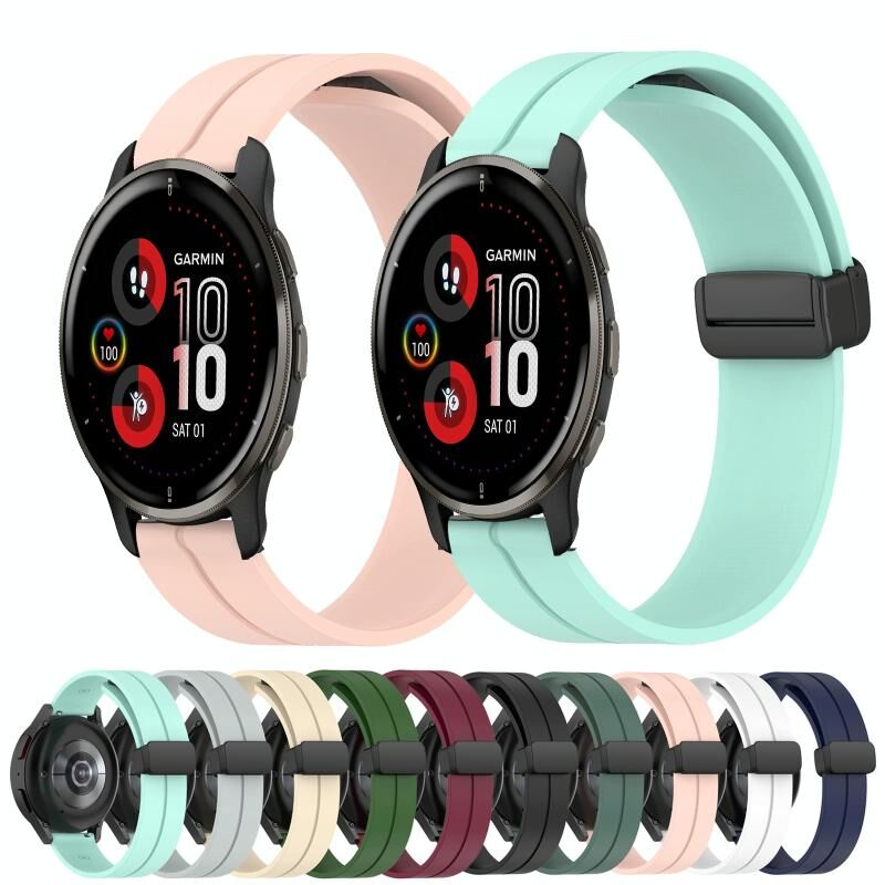 Για το Garmin Venu 2 Plus 20 χιλιοστά στερεό χρώμα μαγνητικό κούμπωμα σιλικόνης ρολόι μπάντα ρολογιού (πράσινο στρατού)