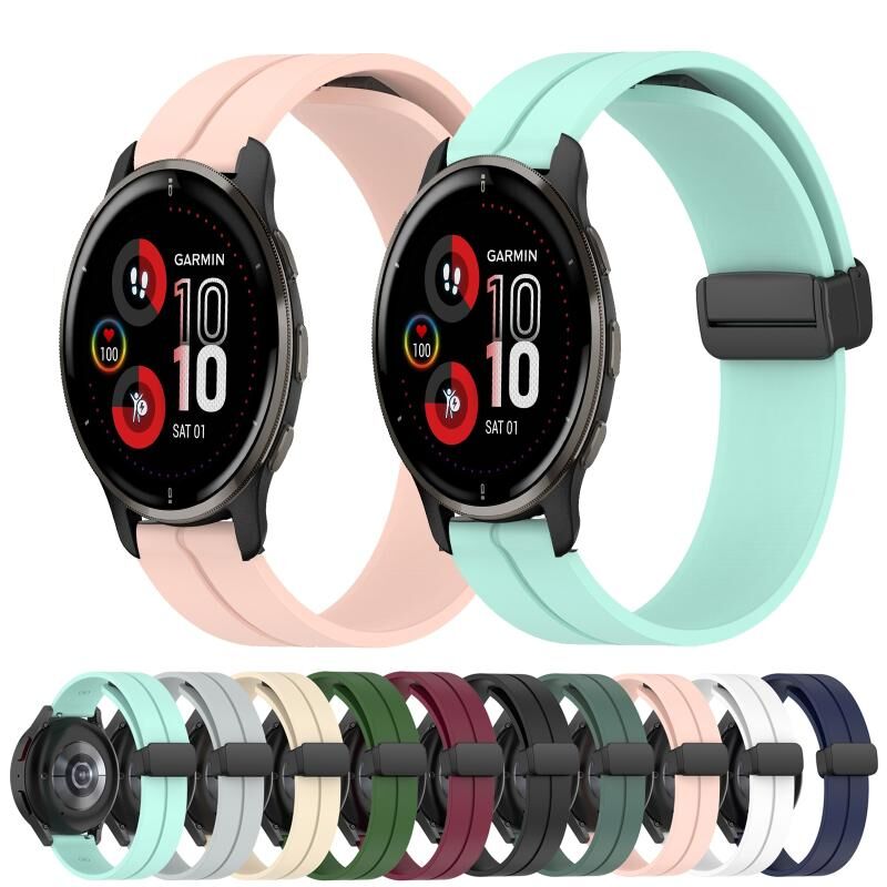 Για το Garmin Venu 2 Plus 20 χιλιοστά στερεό χρώμα μαγνητικό κούμπωμα σιλικόνης ρολόι μπάντα (μαύρο)