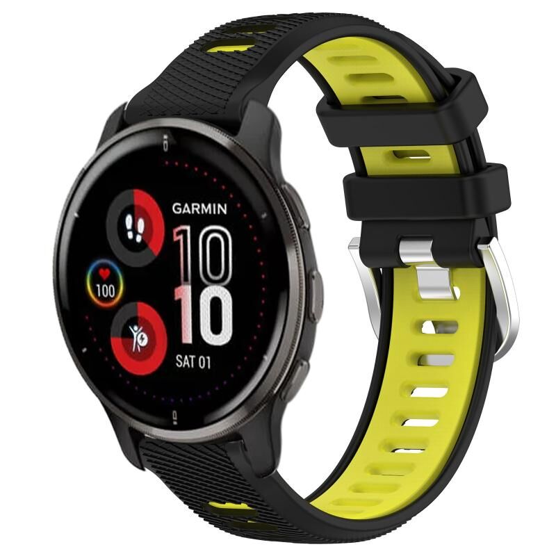 Για Garmin Venu 2 Plus 20mm Αθλητισμός Δύο χρώματα χάλυβα πόρπη σιλικόνης ρολόι μπάντα (μαύρο + πράσινο χρώμα)