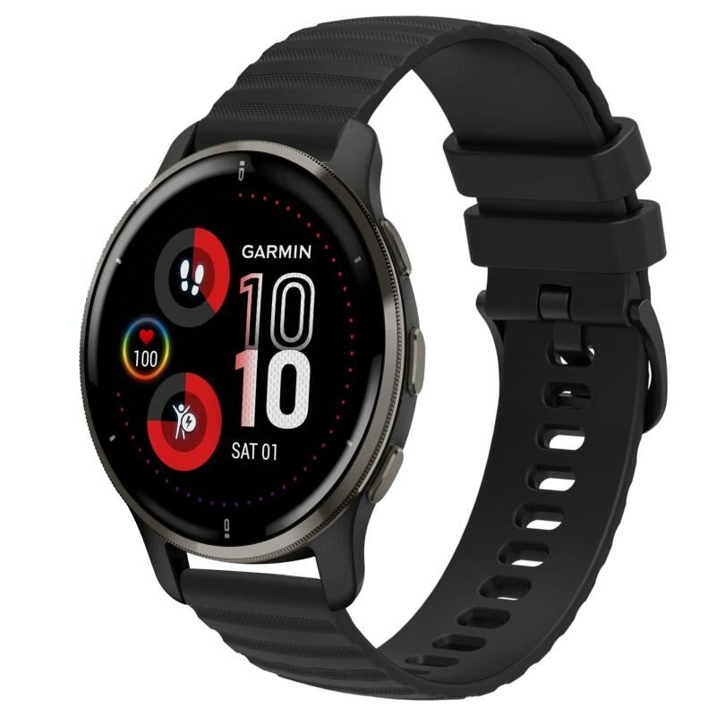 Για το Garmin Venu 2 Plus 20mm Wavy Dot Pattern Solid Color Silicone Watch Band (Μαύρο)